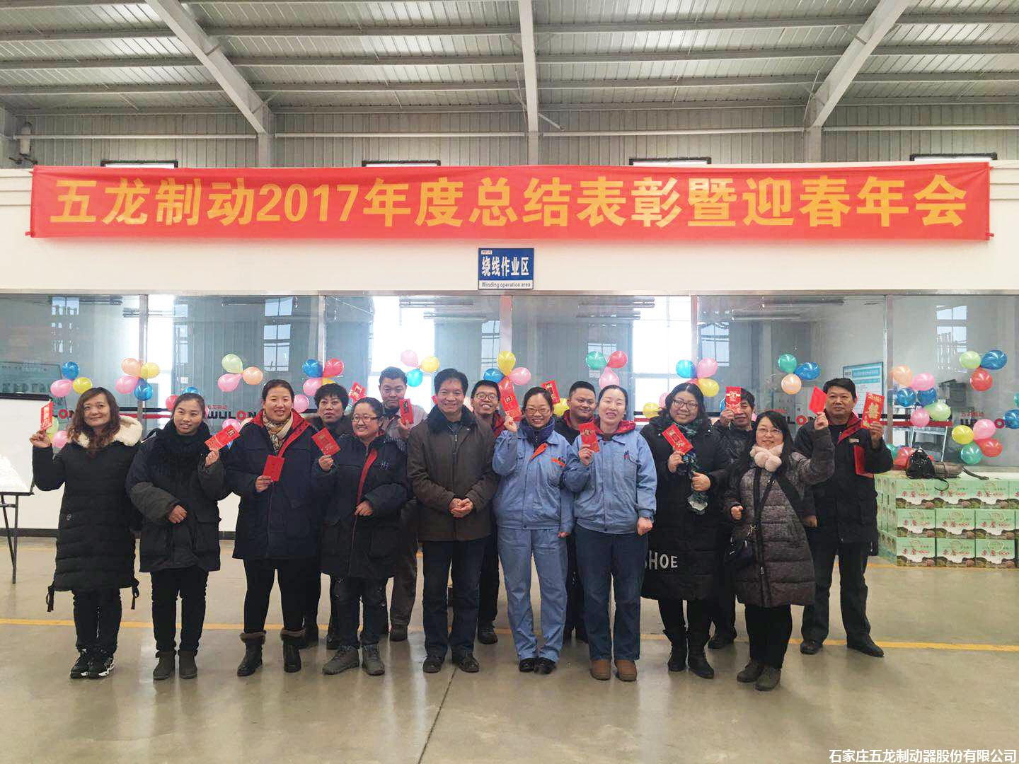 年會(huì)現(xiàn)場中,董事長韓伍林先生給五龍人全體員工頒發(fā)了新春紅包。